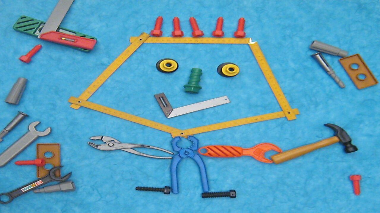 מיני טף עם טופי המיני טף מחפשים את טופי שמתחבא מאחורי עצמים שונים, ומכירים צורות שונות של מגנטים על המקרר.